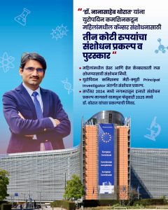 डॉ.नानासाहेब थोरात’ यांना युरोपयिन कमशिनचा तीन कोटी रुपयांचा संशोधन प्रकल्प जाहीर