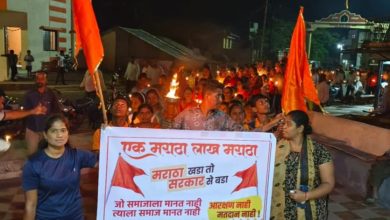जयराम स्वामी वडगाव येथे मराठा आरक्षण मिळविण्यासाठी कॅण्डल मार्च.